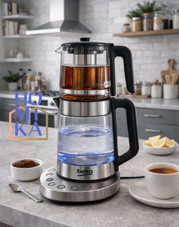 چایساز BEKO مدل MK-1363 با طراحی مدرن و ساختار روهمی، انتخابی شیک و کاربردی برای آشپزخانههای امروزی است. کتری شیشهای 1.7 لیتری با توان 1800 وات، آب را در زمان کوتاه به جوش میآورد و قوری شیشهای روی آن، دمآوری یکنواخت و خوشطعم چای را تضمین میکند. وجود پایه چرخشی 360 درجه، نشانگر LED و سیستم گرمنگهدارنده، استفاده از این چایساز را بسیار راحت و ایمن کرده است. این مدل گزینهای مناسب برای مصرف روزانه، محیطهای اداری و خانوادهها محسوب میشود